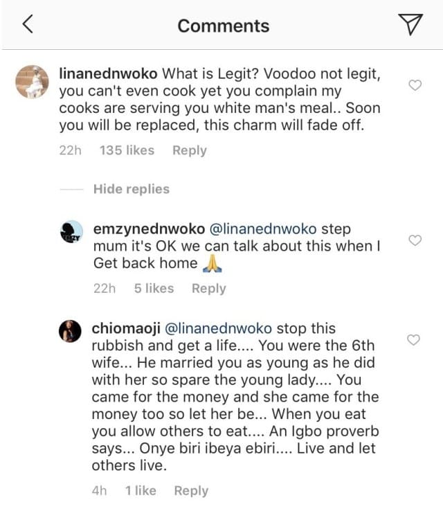 Lina’s step son, Emzy who is a singer, also quickly came to her defence. “Step mum it’s OK we can talk about this when I get back home”.